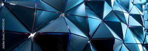 Neon Modern Surface with Tetrahedrons. Illuminated, Blue Three-Dimensional 3d Texture. -