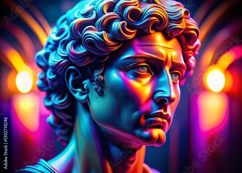 david, sculpture, neon, pop art, illustration, art, statue, classical, modern art, closeup, detail, graphic design, vintage, ancient, mythology, greek, roman, abstract, artwork, painting, drawing, design, image, photo, photo, fine art, artistic, creative, colourful, vibrant, bright, sharp, sharpened, texture, form, background, blurred, aesthetic, style, masterpiece, gallery, museum