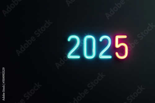 2025, new year, neon sign, dark background, vibrant, futuristic, celebration, light, electricity, glowing, number, numeral, colourful, bright, illuminated, nightlife, party, event, holiday, countdown, future, modern, design, graphic, decoration, festive, anticipation, hope, change, time, calendar