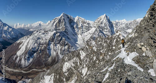 Nepal, Khumbu, Everest region, Mountaineers on Pokalde peak