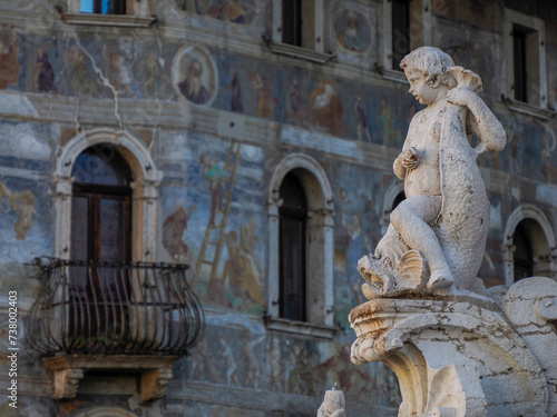 neptune, statue, dome, tour tourism, architecture, italy, trent, tower, old, cathedral, europa, ancient, art, landmark, italian, history, building, sky, city, travel, church, historical building, exterior, downtown, square, historic, facades, antique, mediaeval, palace, detail, famous, view, urban, house, painting, wall, touristic, window, front, paint, attraction, beautiful, ornate, decoration