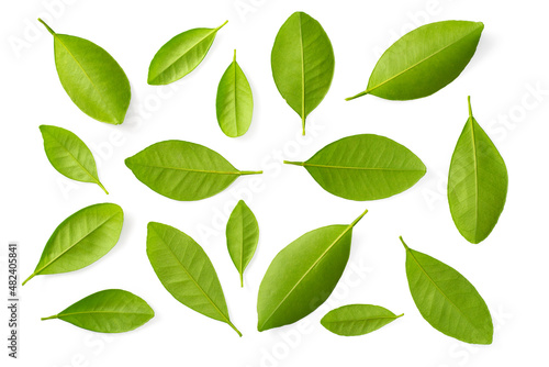 Neroli leaves isolated on the white background, top view.