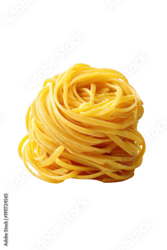 pasta, spaghetti, noodle, food, uncooked, yellow, carbohydrate, italian, cookery, ingredient, raw, dry, round, nest, swirl, twirl, strand, thin, long, grain, wheat, dough, meal, dinner, lunch