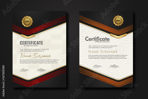luxury, certificate, new, design, 2, set, template, shadow, effect, overlap, layer, cream, colours, pattern, background, award, business, education, vector, illustration, ornament, elegant, modern, badge, border, appreciation, achievement, university, professional, corporate, success, gold, gift, bank, diploma, frame, paper, stock, decorative, line, corner, elbow, style, bill, champion, honour, black, portrait, red