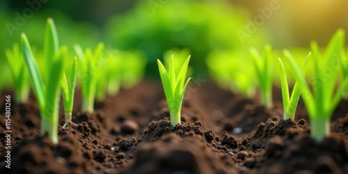 New Growth Vibrant Seedlings Emerging from Dark Soil in a Lush Garden Setting
