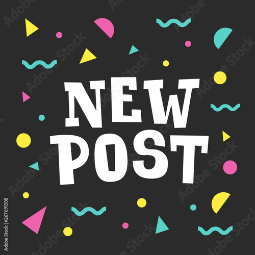 New post. Social media banner with colourful abstract background. Followers engagement concept.