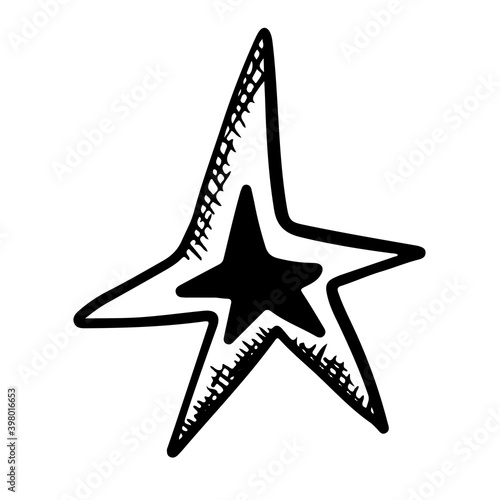 New year star on an isolated white background. Christmas element in hand draw style. Vector illustration.