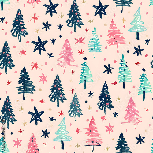 New Year's and Christmas festival seamless pattern in a 2D doodle illustrator style on pastel color backgrounds for graphic advertising.
