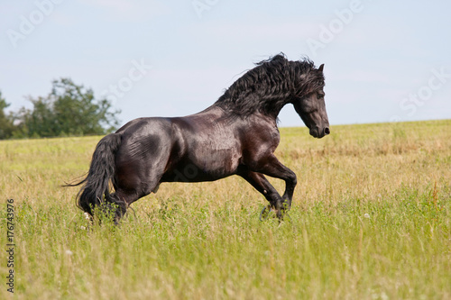 Nice friesian horse running