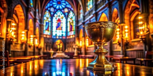 Night Photography of the Golden Sacred Chalice in Church of Saint Matthew, Stitar, Croatia