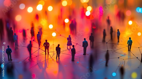 network, connection, people, community, social, networking, city, light, bokeh, night, abstract, relationship, communication, technology, global, society, urban, crowd, miniature, figure, social network, abstract background, vibrant, bright