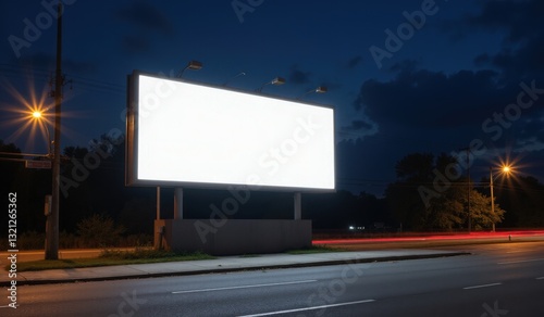 "Nighttime Empty Billboard Mockup with Street Lamp and Car Headlight Illumination"