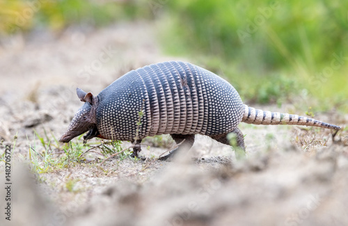 Nine-banded armadillo (Dasypus novemcinctus) walking on a sandy path in Venice, Florida