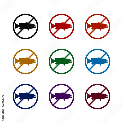 No fishing sign icon, color set