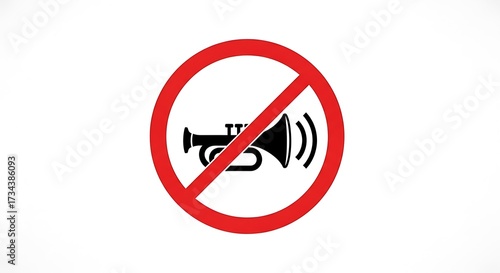prohibition sign, forbidden, restricted, silence, symbol, icon, vector, illustration, graphic, horn, trumpet, traffic sign, roadsign, warning, rule, regulation, public, safety, urban, peace, calm, driver, vehicle, transport, communication, instruction, mandatory, information, minimalist, clean, white background