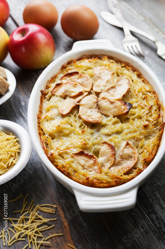 Noodles casserole with apples