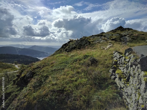 nordic, nature, norge, sky, water, landscape, summer, green, bergen, hill, hiking, rock, mountain, view, cloud, travel, horizon, high, scene, skyline, mount, holiday, trail, environment, tour tourism, beauty, sea, trip, town, attraction, adventure, panorama, climbing, forest, grass, north, europa, wood, scenery, tree, wildlife, outdoors, mountain, natural, cloud, scandinavia, beautiful, top