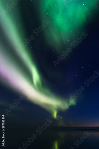 Northern Boreal Lights at sea in Lady Richardson Bay, Victoria Island, northwest passage in Canada.