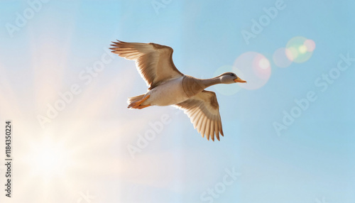 duck, flight, freedom, nature, sunrise, sky, wildlife, wingspan, animal, water bird, north, outdoors, bird, soaring, warm light, shadow, photo, scenic, dynamic, sky blue, golden hour, beauty, motion, calm, peaceful, morning, landscape, grace, elegance, solo, 1, animal portrait, avian, calmness, serene, blue, open space, aerial, presence, wing, feather, sunlight, clear, high-coloured, harmony, fresh, inspiring
