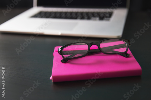 dark, black, pink, colours, computer, connection, creative, designer, desktop, desk, digital, display, freelance, hipster, goggles, reading, keyboard, laptop, lifestyle, marketing, modern, notepad, notebook, professional, screen, tech, technology, wireless, work, workspace, tablet, studio