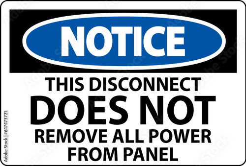 Notice Sign, This Disconnect Does Not Remove All Power From Panel
