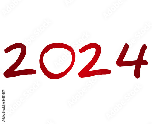 Number 2024 gradient red on transparent background for new year concept design elements.