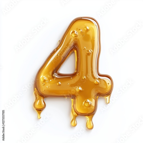 Number 4 made of thick maple syrup with dripping edges isolated on a clean white background