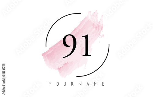 Number 91 Watercolor Stroke Logo Design with Circular Brush Pattern.