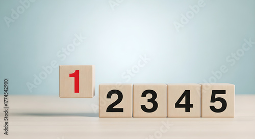 Number One Ranking Concept Red Wooden Block Horizontal Copy Space