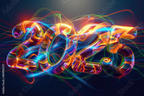 Numbers 2025 written in colorful neon font. Celebrating New Year concept.