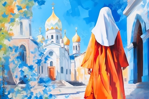 nuns, illustrations of monastic life in the church, religious painting