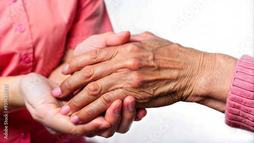 Nurse's Hand Holding Elderly Lady's Hand in a Supportive Gesture