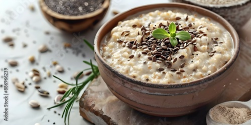 Nutritious Bowl of Hemp Seed Porridge with Flax and Poppy Seeds. Concept Healthy Breakfast, Plant-Based Meal, Nutrient-Rich Ingredients, Superfood Bowl