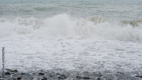 ocean, wave, shoreline, foam, pebble, rock, water, beach, coastal, sea, nature, marin, landscape, shore, wet, splashing, surf, tide, aquatic, environment, cloudy, grey, stone, texture, natural, fluid, movement, horizon, coastline, marine life, seascape, calmness, scenic, water surface, ripple, rocky beach