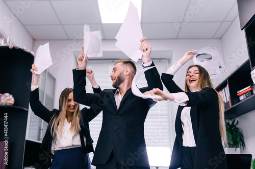 workplace, job, business, celebrate, winner, young, people, express, arm, raised, friday, happy, team, victory, throw, paper, air, excited, staff, party, success, man, woman, three, office, person, manager, corporate, employee, suit, businessperson, businesswoman, teamwork, tied-up, work, agency, smiling, standing, celebration, arm, gesticulate, dancing, triumph, funny, cheerful, joy, young people