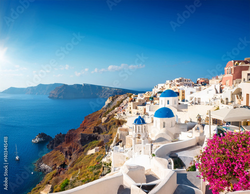 oia scenic village with white buildings on the caldera santorini island greece travel image