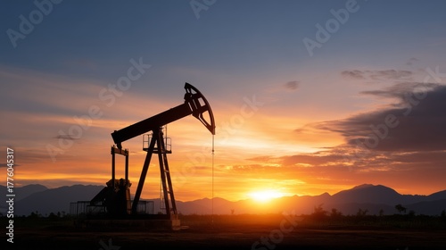 Oil extraction process at sunset industrial landscape oil pumping station nature view