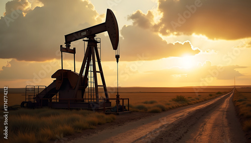 oil pump, sunset, field, golden hour, energy, extraction, industry, crude oil, sky, cloud, silhouette, landscape, dirt road, horizon, rural, countryside, sun, evening, dusk, orange, shadow, machine, equipment, well, crude oil, production, power, natural resource, environment, technology, infrastructure, transportation, exploration, development, business, economy, america, texas, prairie, grass, road, path, sunlight, warm, peaceful, scenic
