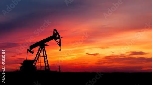 Oil pump jack silhouette at sunset