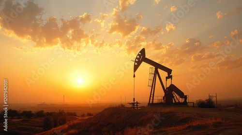 oilfield, sunset, silhouette, energy, extraction, drilling, crude oil, scenery, industry, golden hour, cloud, horizon, rural, landscape, machinery, production, natural resource, sky, environment, engineering, equipment, twilight, serene, countryside, colours, outdoors, warm light, dusk, power, technology, dramatic sky, field, oil industry, scenic, rural area, calmness, beautiful, mining, peaceful, atmospheric