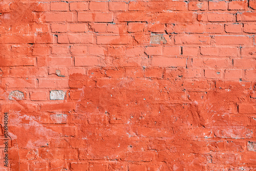 old brick wall painted in red color