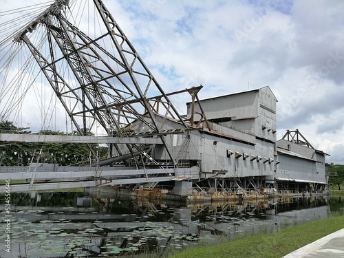Old dredging ship in a lake remnants of British occupation during war.