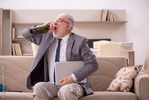 old, businessman, man, employee, boss, business, adviser, working, from, home, house, pant, computer, laptop, online, cyberspace, call, calling, video, telecom, meeting, conference, teleconference, discussing, explaining, virtual, addicted, addiction, addict, bottle, wine, beer, whiskey, whiskey, alcohol, alcoholic, hangover, drunk, glasses, booze, drunken, alcoholism, drinking, drink, pissed, remote, virus