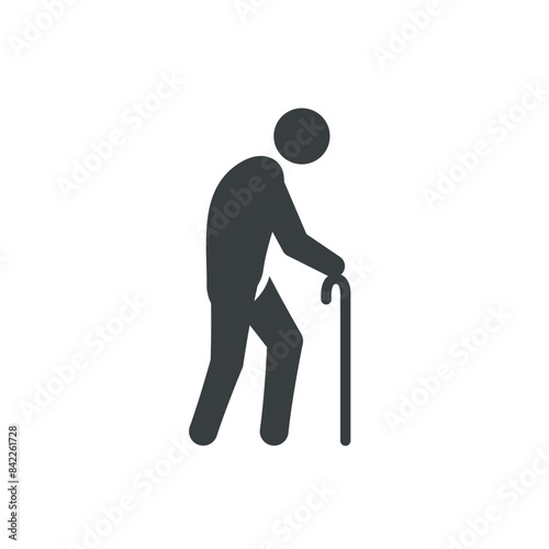 old, man, walk, pedestrian, cane, silhouette, stick, male, grandfather, elder, ageing, pictogram, age, elderly, grandfather, walking, vector, illustration, isolated, isolation