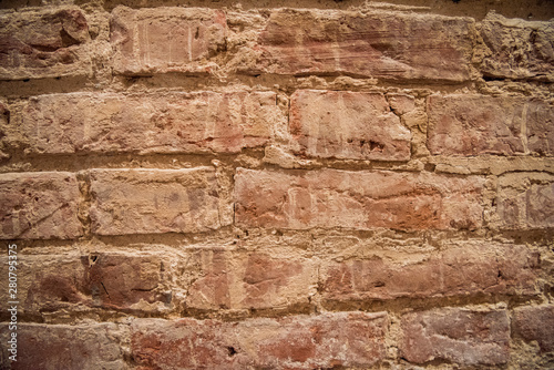 Old red brick wall, old texture of red stone blocks.