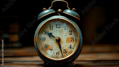 Old rusty vintage alarm clock.