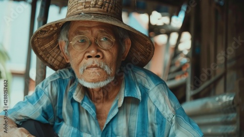 Old Thai people install solar cells on the roof Male engineer quality control solar panel industry telephoto lens realistic bright-dark contrast lighting