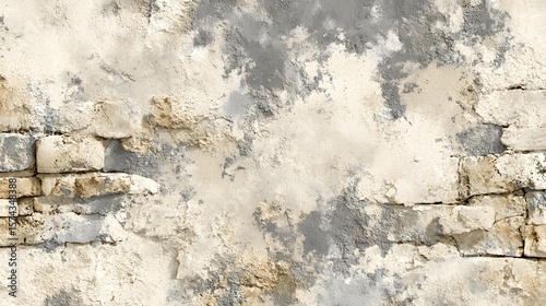 Old Weathered Brick Wall with Peeling Paint in Neutral Tones