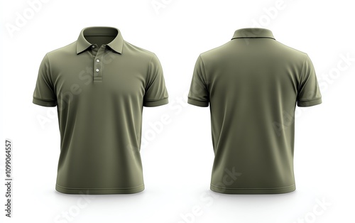 Olive green polo shirt, white isolate background