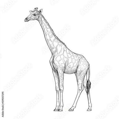 isolated, giraffe, background, vector, art, stroke, icon, nature, linear, continuous, tropical, doodle, white, profile, line, african, long, endless, 1, animal, wildlife, hand, outline, high, symbol, single, minimalism, idea, thin, wild, element, standing, emblem, stylised, illustration, vignetting, concept, signs, drawing, trendy, africa, object, mammal, contour, simplicity, graphic, card, tall